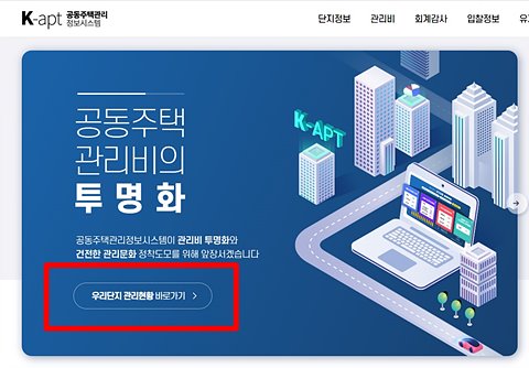 메인화면에서 우리단지 관리현황 바로가기를 클릭합니다.