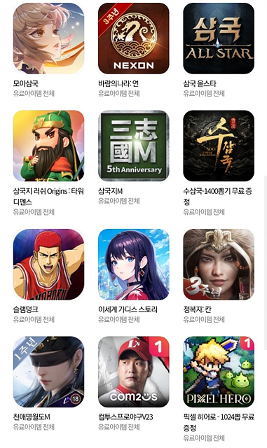 모아삼국, 바람의나라 연, 삼국올스타, 삼국지러쉬, 삼국지M, 수삼국, 슬램덩크, 이세계 가디스 스토리, 정복자 칸, 천애명월도M, 컴투스프로야구 V23, 픽셀히어로.
